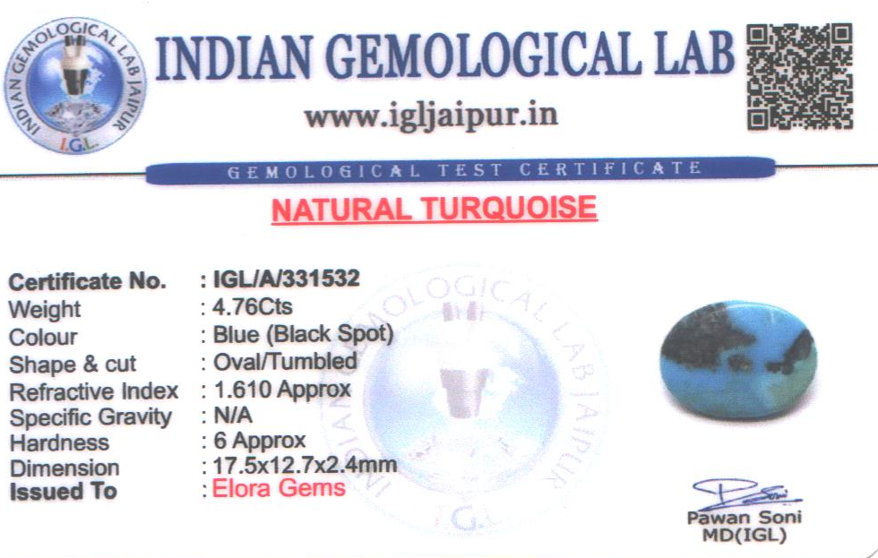Natural Turquoise weighing 4.76 carats In Oval from Tibet