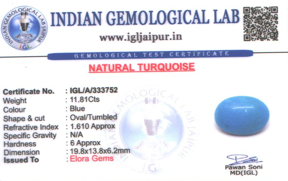 Natural Turquoise weighing 11.81 carats In Oval from USA