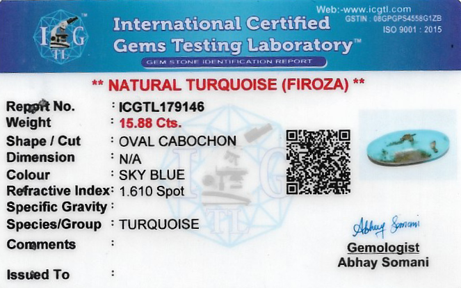 Natural Turquoise weighing 15.88 carats In Oval from USA