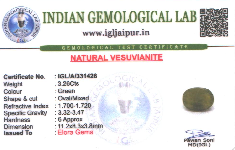 Natural Vesuvianite weighing 3.26 carats In Oval