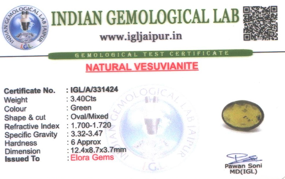 Natural Vesuvianite weighing 3.4 carats In Oval