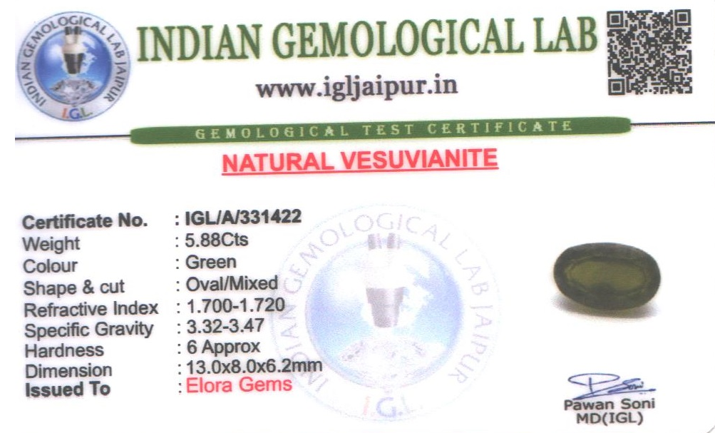 Natural Vesuvianite weighing 5.88 carats In Oval