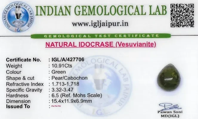 Natural Vesuvianite weighing 10.91 carats In Pear