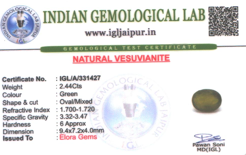 Natural Vesuvianite weighing 2.44 carats In Oval