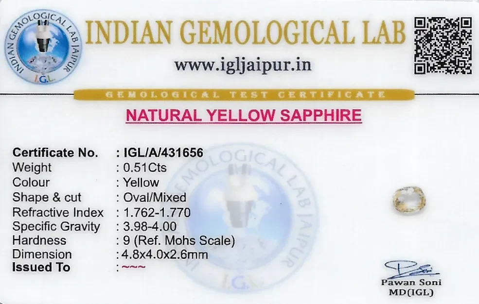 Yellow Sapphire (Pukhraj) 5x4 MM 0.51 carats