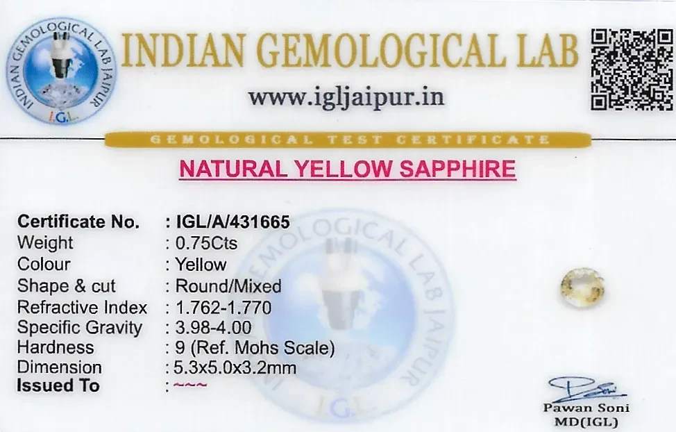 Natural Yellow Sapphire (Pukhraj) weighing 0.75 carats In Round from Sri Lanka (Ceylon)