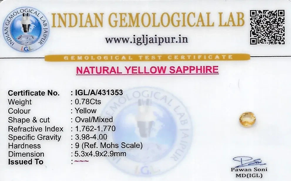Natural Yellow Sapphire (Pukhraj) weighing 0.78 carats In Oval from Sri Lanka (Ceylon)
