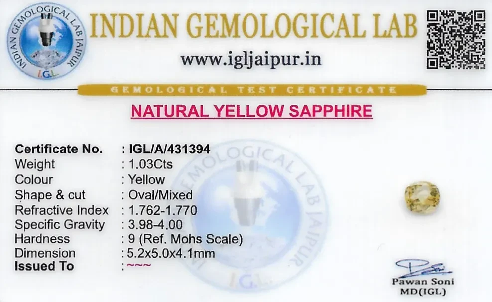 Natural Yellow Sapphire (Pukhraj) weighing 1.03 carats In Oval from Sri Lanka (Ceylon)