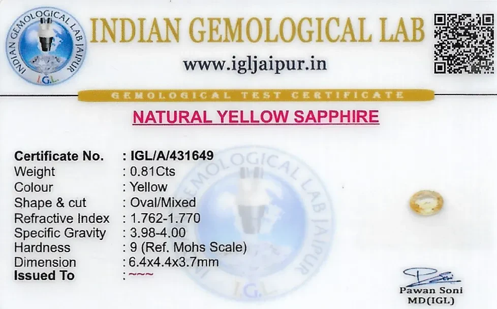 Natural Yellow Sapphire (Pukhraj) weighing 0.81 carats In Oval from Sri Lanka (Ceylon)