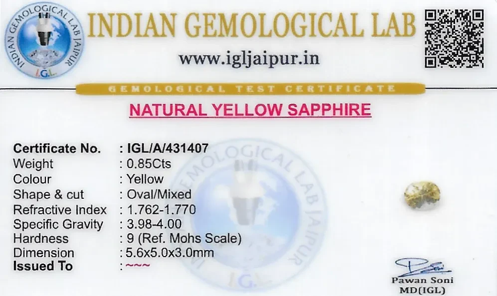 Natural Yellow Sapphire (Pukhraj) weighing 0.85 carats In Oval from Sri Lanka (Ceylon)