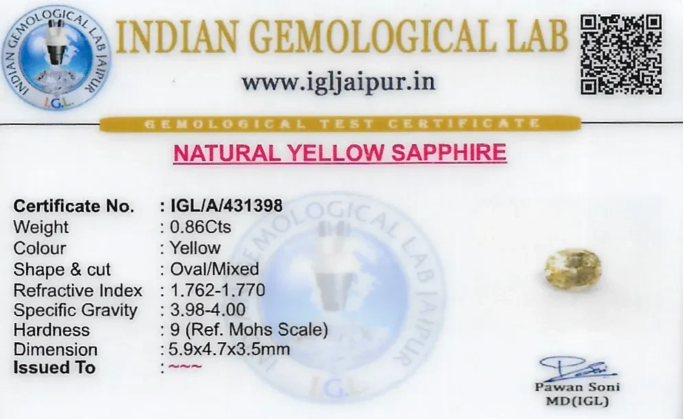 Natural Yellow Sapphire (Pukhraj) weighing 0.86 carats In Oval from Sri Lanka (Ceylon)