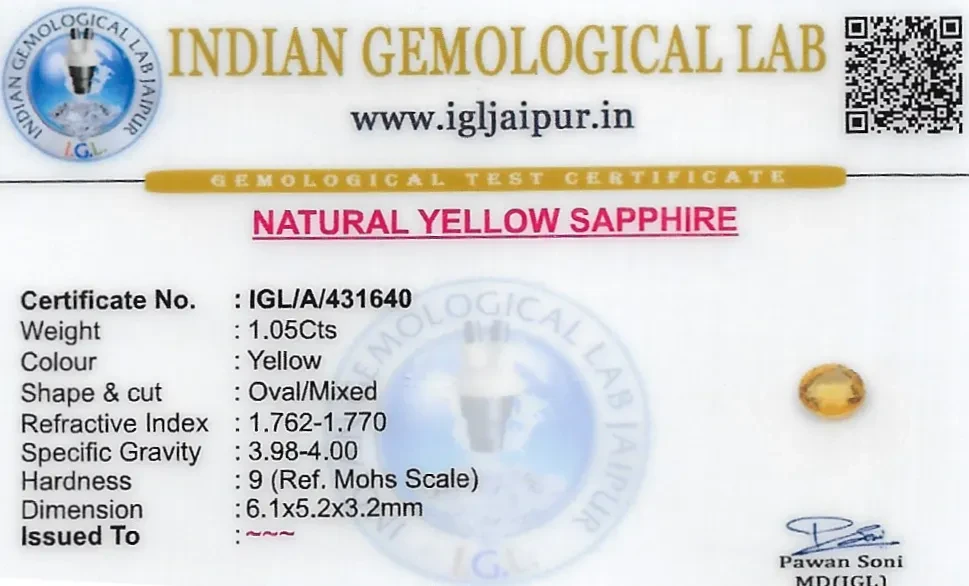Natural Yellow Sapphire (Pukhraj) weighing 1.05 carats In Oval from Sri Lanka (Ceylon)