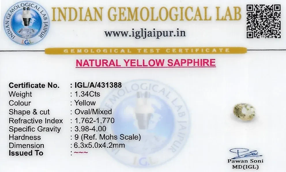 Natural Yellow Sapphire (Pukhraj) weighing 1.34 carats In Oval from Sri Lanka (Ceylon)