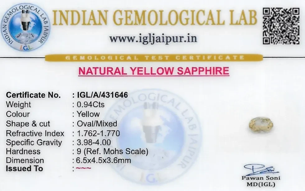Yellow Sapphire (Pukhraj) 7x5 MM 0.94 carats