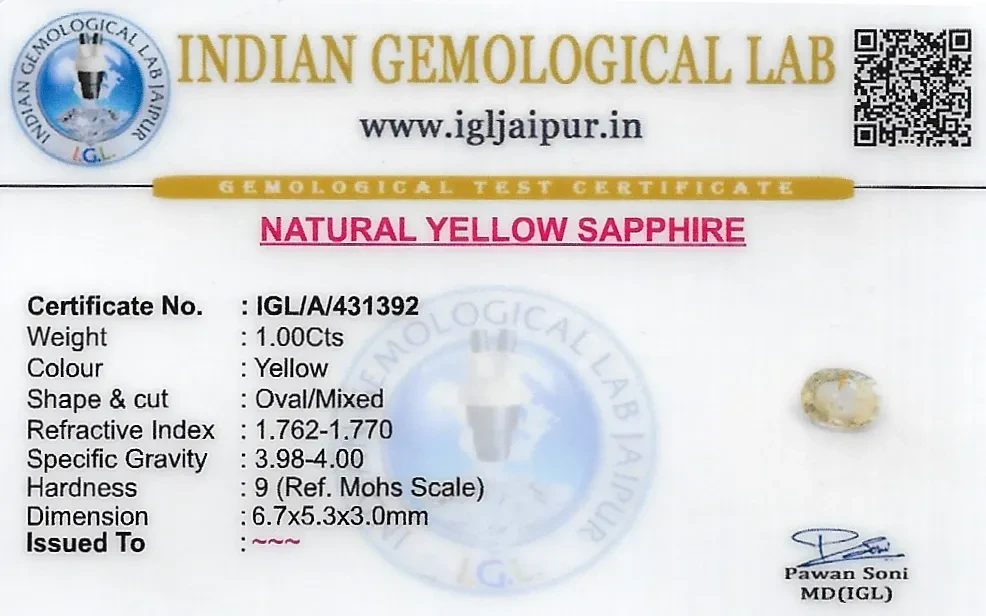 Natural Yellow Sapphire (Pukhraj) weighing 1 carats In Oval from Sri Lanka (Ceylon)