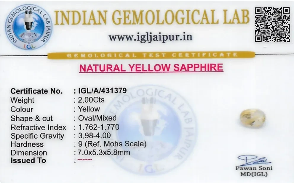 Natural Yellow Sapphire (Pukhraj) weighing 2 carats In Oval from Sri Lanka (Ceylon)
