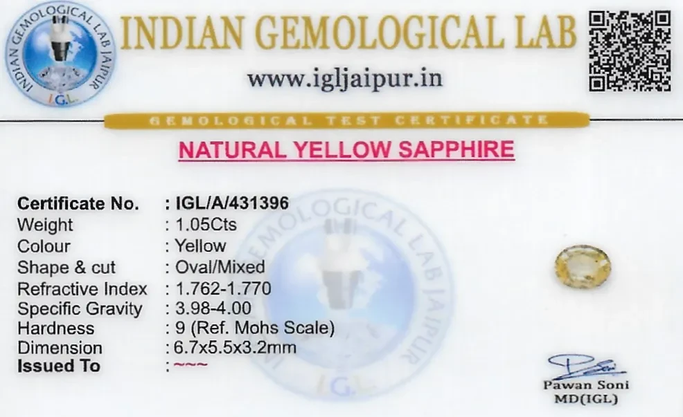 Natural Yellow Sapphire (Pukhraj) weighing 1.05 carats In Oval from Sri Lanka (Ceylon)