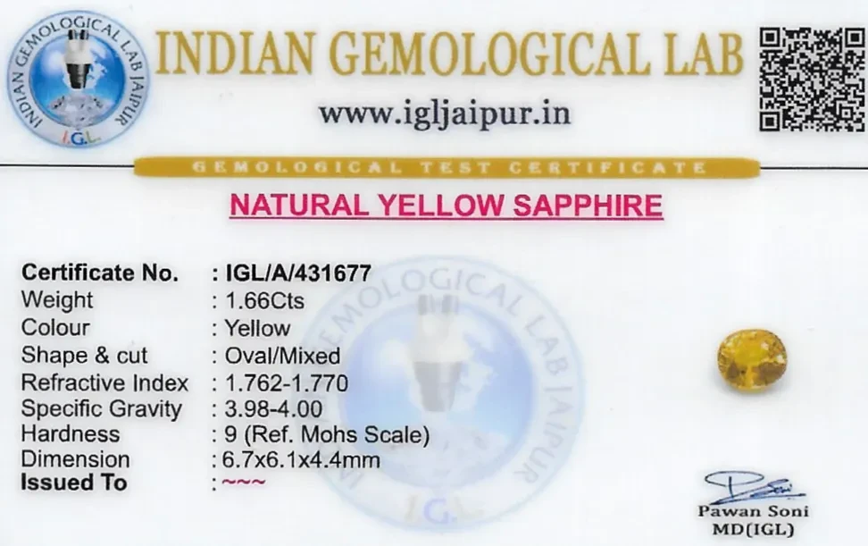 Yellow Sapphire (Pukhraj) 7x6 MM 1.66 carats