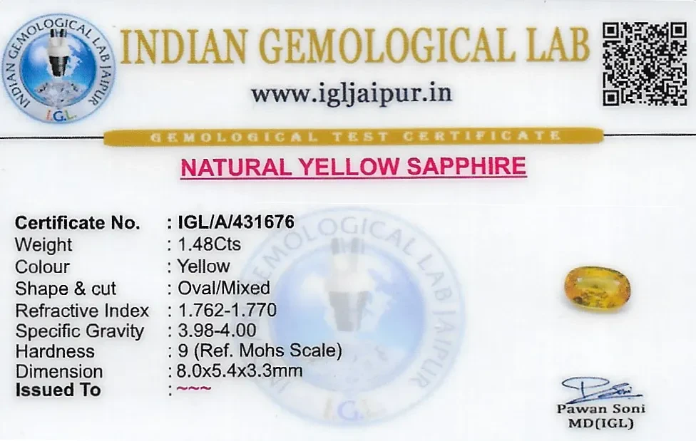 Natural Yellow Sapphire (Pukhraj) weighing 1.48 carats In Oval from Thailand