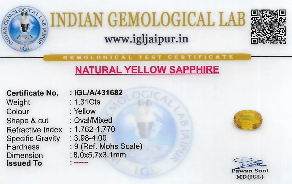 Yellow Sapphire (Pukhraj) 8x6 MM 1.31 carats