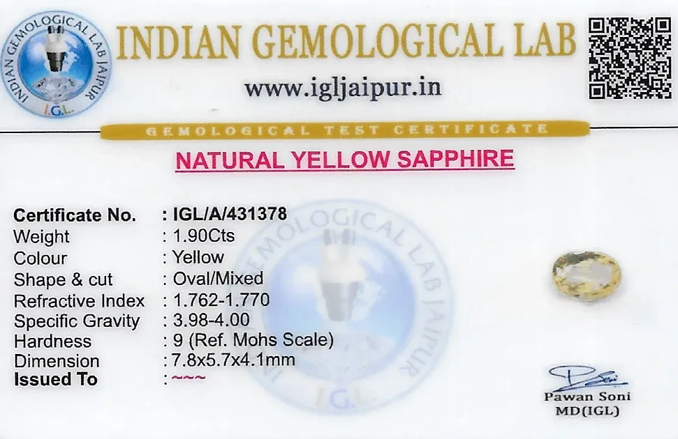 Yellow Sapphire (Pukhraj) 8x6 MM 1.9 carats