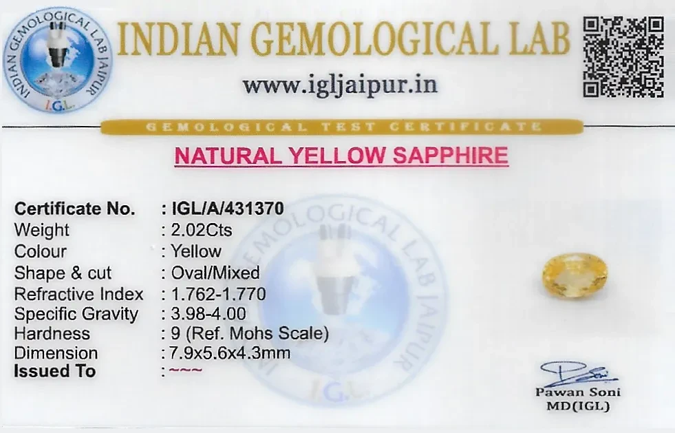 Natural Yellow Sapphire (Pukhraj) weighing 2.02 carats In Oval from Sri Lanka (Ceylon)