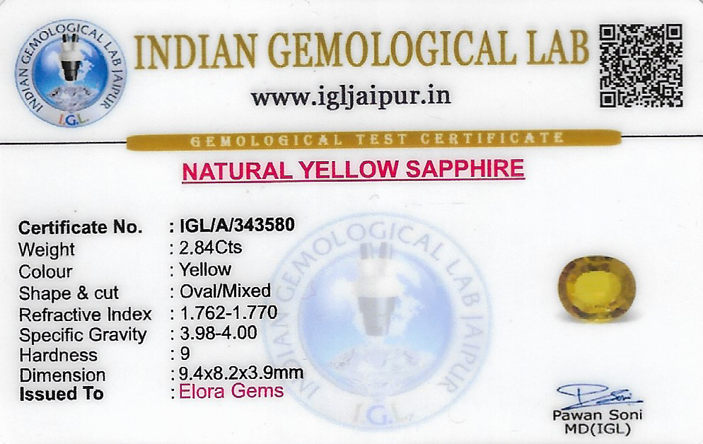 Natural Yellow Sapphire (Pushparag) weighing 2.84 carats In Oval from Thailand