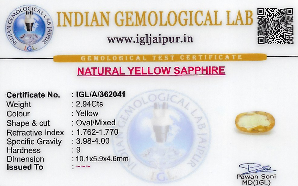 Natural Yellow Sapphire (Pushparag) weighing 2.94 carats In Oval from Sri Lanka (Ceylon)