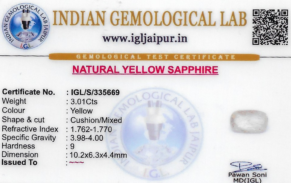 Natural Yellow Sapphire (Pushparag) weighing 3.01 carats In Cushion from Sri Lanka (Ceylon)