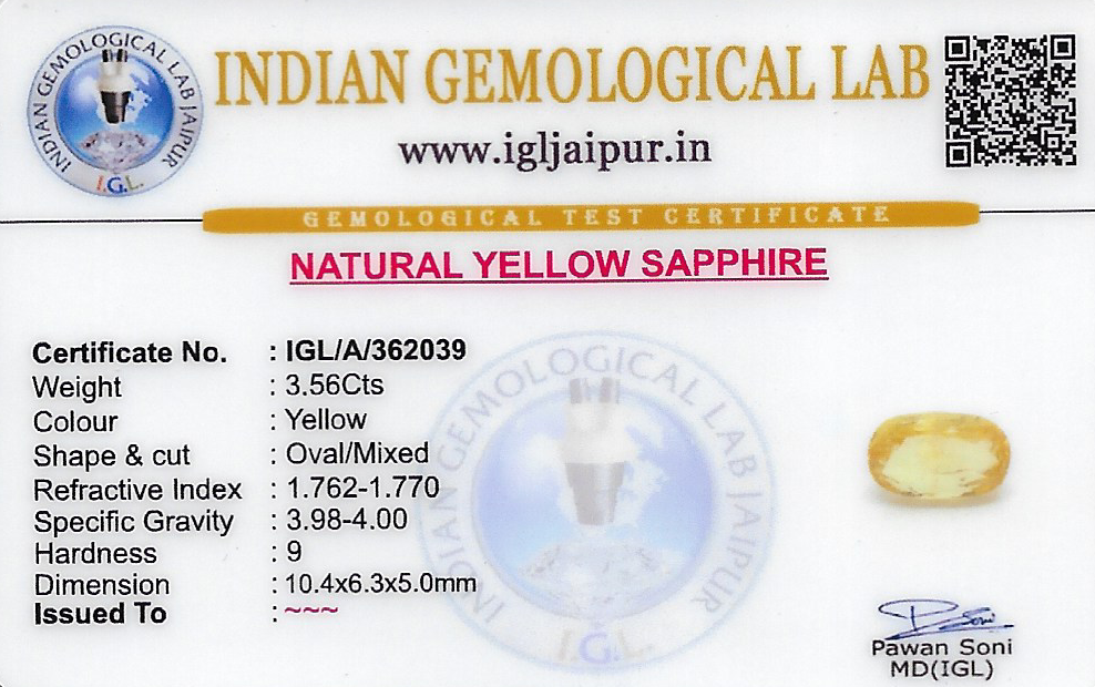 Yellow Sapphire (Pushparag) 10x6 MM 3.56 carats