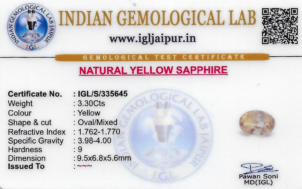 Yellow Sapphire (Pushparag) 10x7 MM 3.3 carats