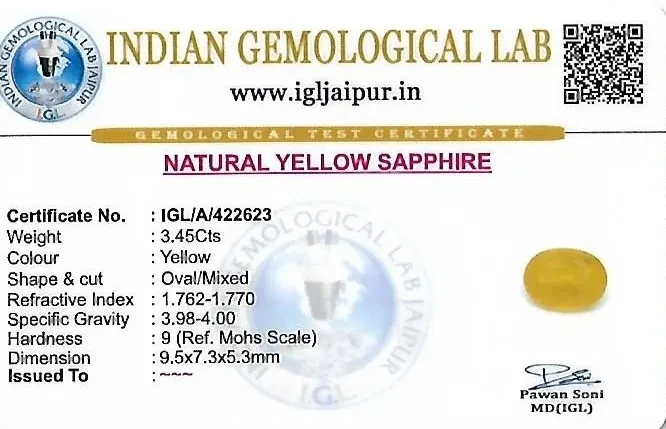 Yellow Sapphire (Pushparag) 10x7 MM 3.45 carats