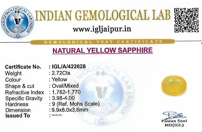 Yellow Sapphire (Pushparag) 10x8 MM 2.72 carats