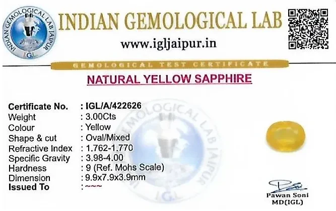 Natural Yellow Sapphire (Pushparag) weighing 3 carats In Oval from Thailand