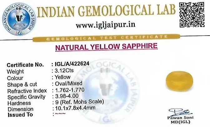 Yellow Sapphire (Pushparag) 10x8 MM 3.12 carats