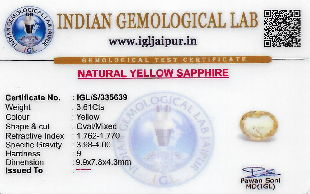 Yellow Sapphire (Pushparag) 10x8 MM 3.61 carats