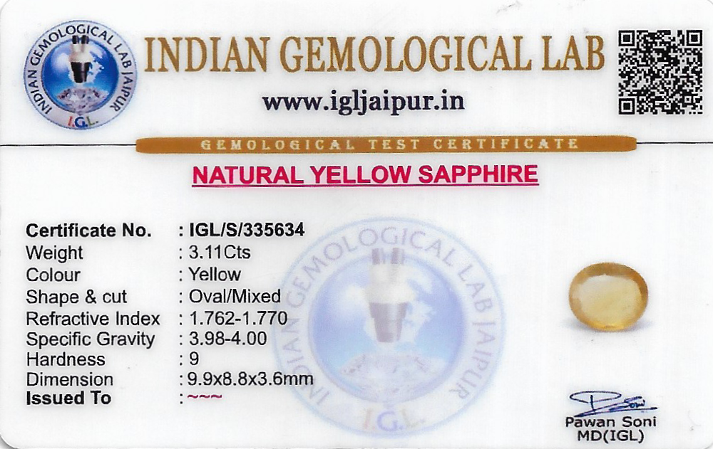 Yellow Sapphire (Pushparag) 10x9 MM 3.11 carats