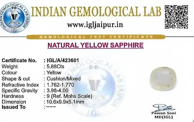 Yellow Sapphire (Pushparag) 11x10 MM 5.88 carats