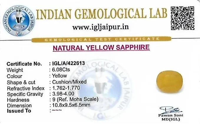 Yellow Sapphire (Pushparag) 11x10 MM 6.08 carats