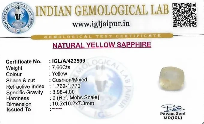 Yellow Sapphire (Pushparag) 11x10 MM 7.66 carats