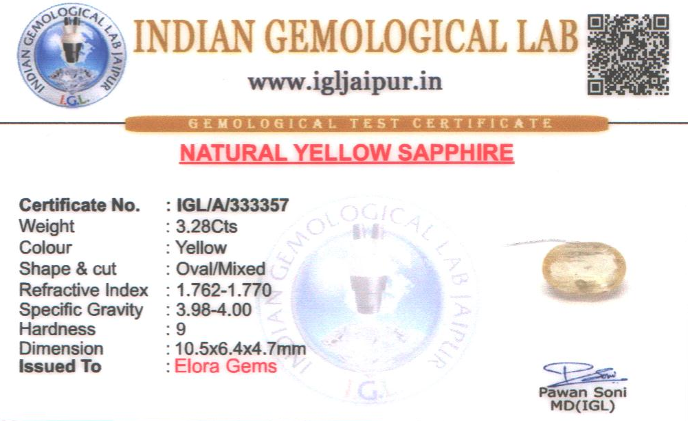 Natural Yellow Sapphire (Pushparag) weighing 3.28 carats In Oval from Sri Lanka (Ceylon)
