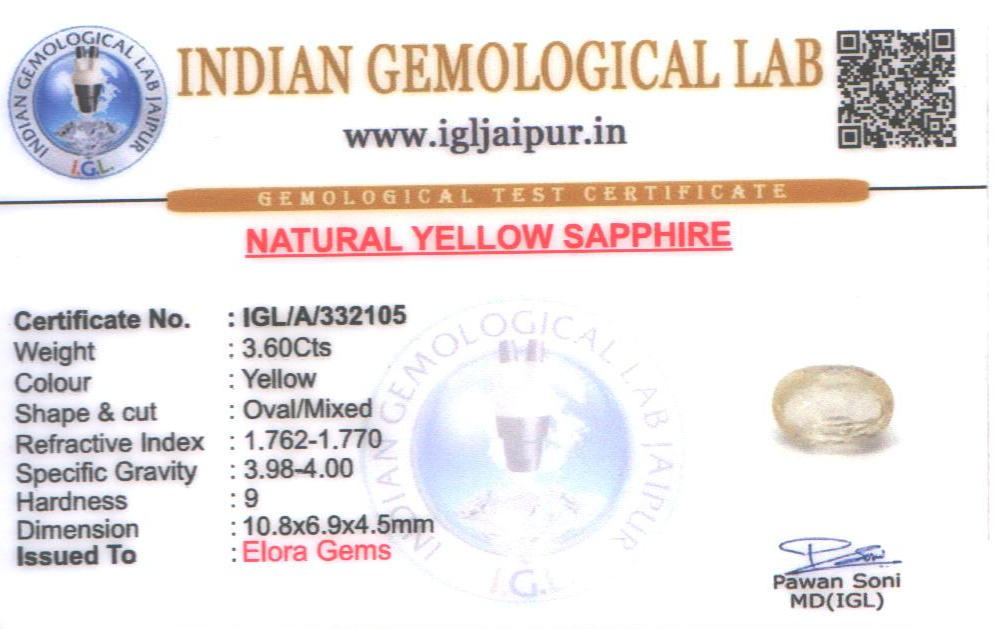 Yellow Sapphire (Pushparag) 11x7 MM 3.6 carats