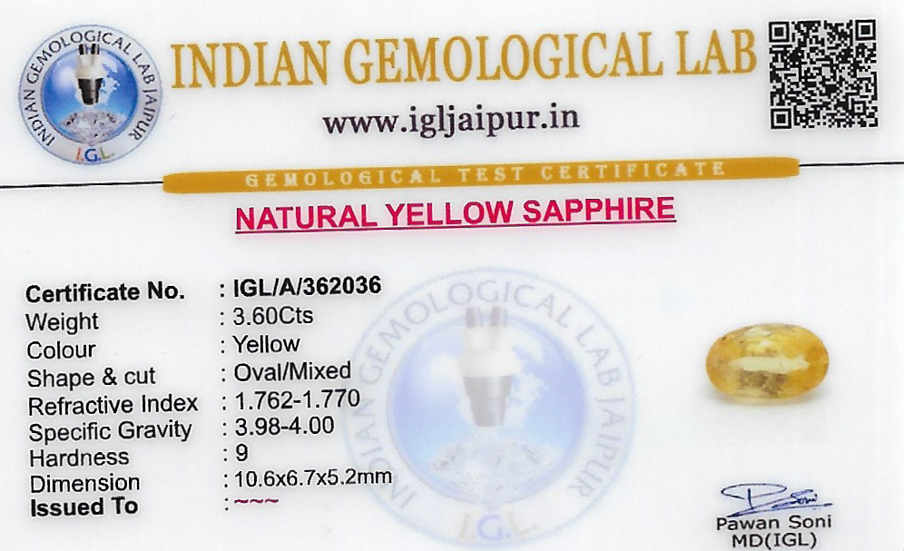 Yellow Sapphire (Pushparag) 11x7 MM 3.6 carats