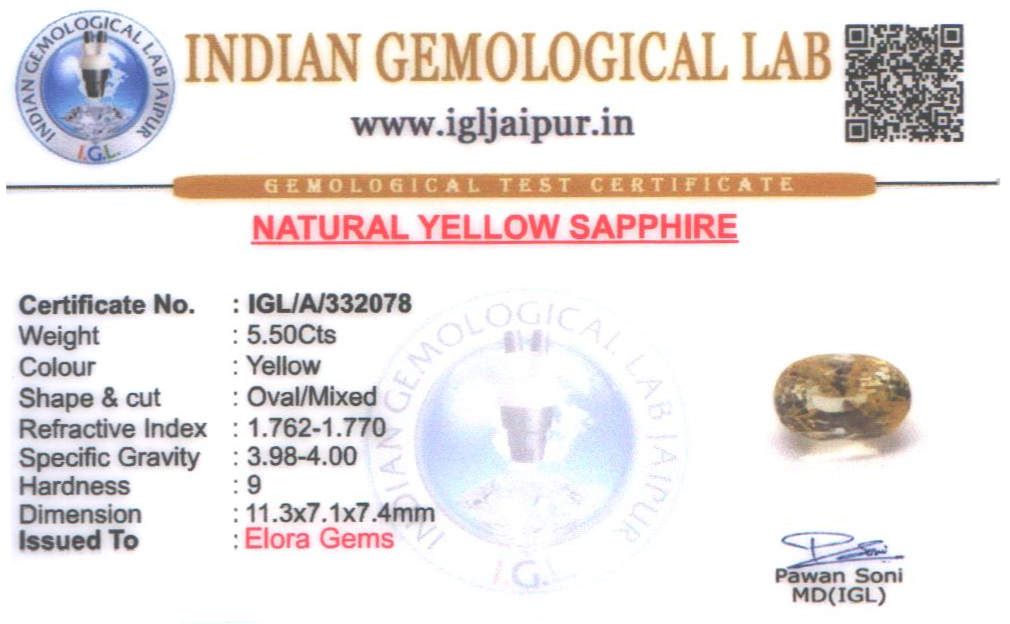 Natural Yellow Sapphire (Pushparag) weighing 5.5 carats In Oval from Sri Lanka (Ceylon)
