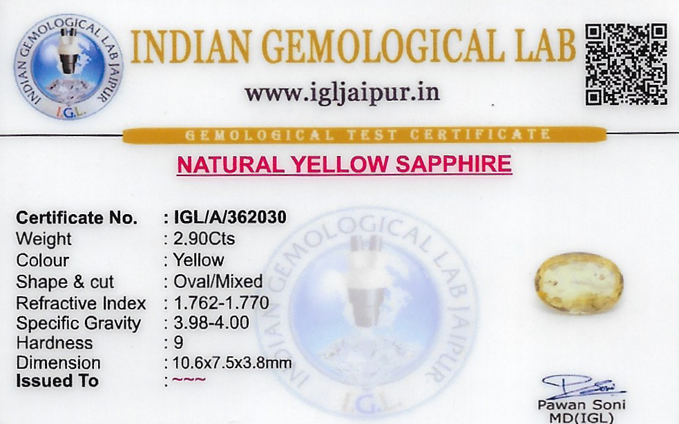 Yellow Sapphire (Pushparag) 11x8 MM 2.9 carats