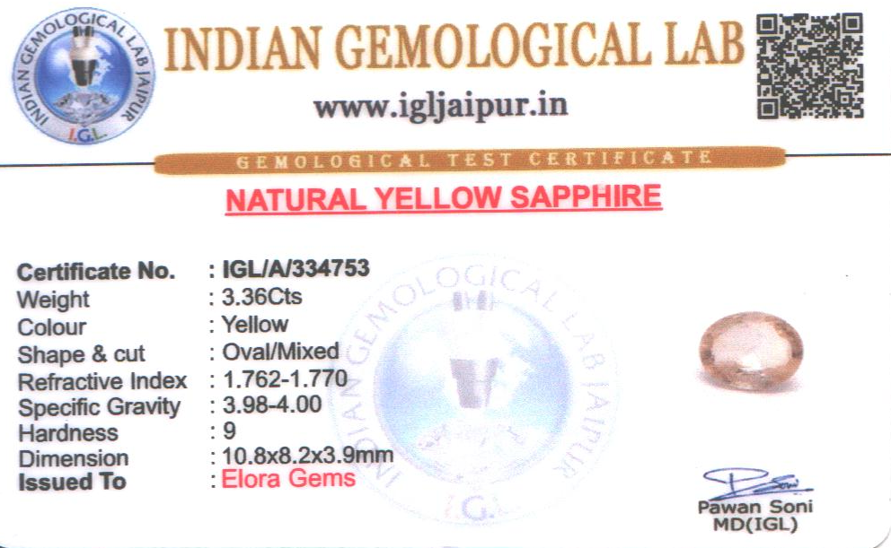 Yellow Sapphire (Pushparag) 11x8 MM 3.36 carats