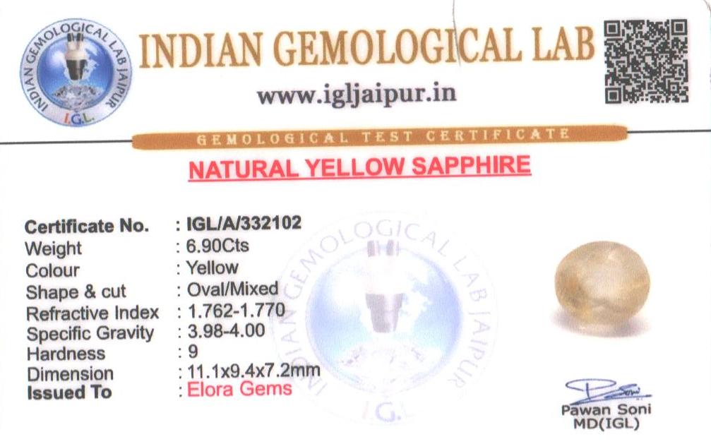 Yellow Sapphire (Pushparag) 11x9 MM 6.9 carats