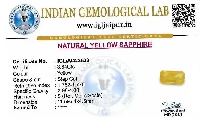 Yellow Sapphire (Pushparag) 12x6 MM 3.84 carats