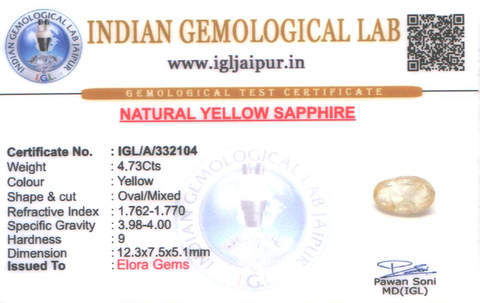 Yellow Sapphire (Pushparag) 12x8 MM 4.73 carats