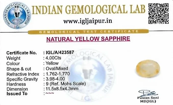 Yellow Sapphire (Pushparag) 12x9 MM 4 carats
